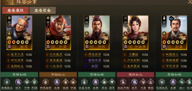 基于以上原则,我们为大家推荐以下最新吴国最强阵容: